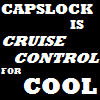 Description: White text on black background which reads "CAPSLOCK IS CRUISE CONTROL FOR COOL".